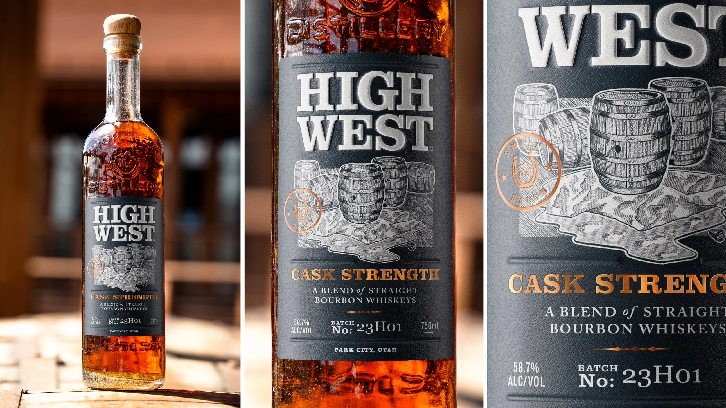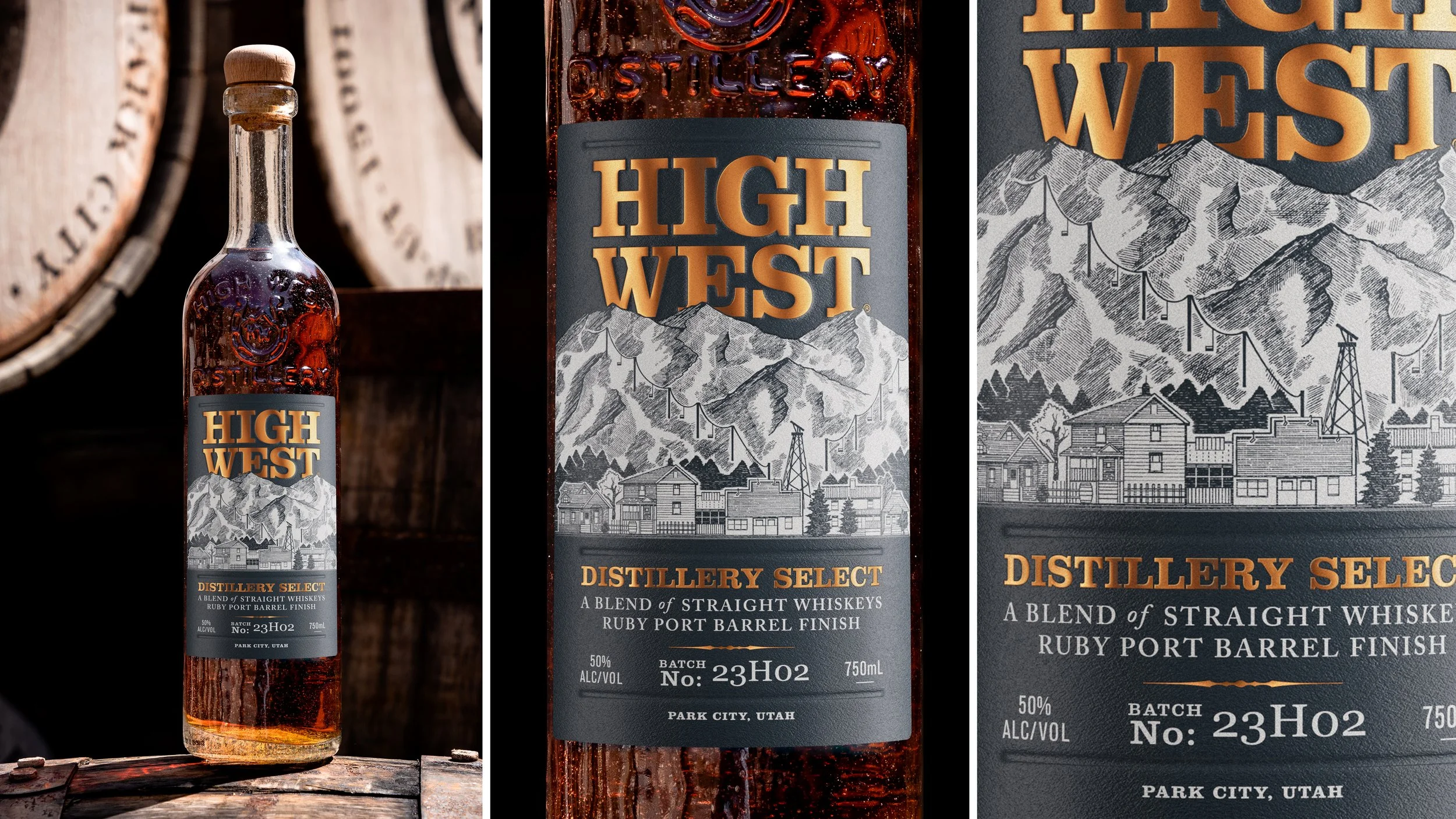 After redesigning most of High West’s product packaging, the Team wanted us to tackle new labels for their special barrel select whiskeys for 2023 and beyond. A tedious label journey ending with over 28 mechanical files for print production, this special series stayed close-to-home within the Core and Limited Release realms, yet different enough to showcase their rarity. An inverted label look gives them a bold presence. The barrel spill gives a special nod back to prohibition while the whiskey puddle reflects the iconic mountainscape of the Wasatch peaks in Utah, where these exceptional blends are made. A dark charcoal background with light grey content gives the design strong contrast, standing out on shelf. Specialty print accents like blind embossing and copper foil elevate this product line beyond High West’s standard-tier whiskeys representative of the unique blends.